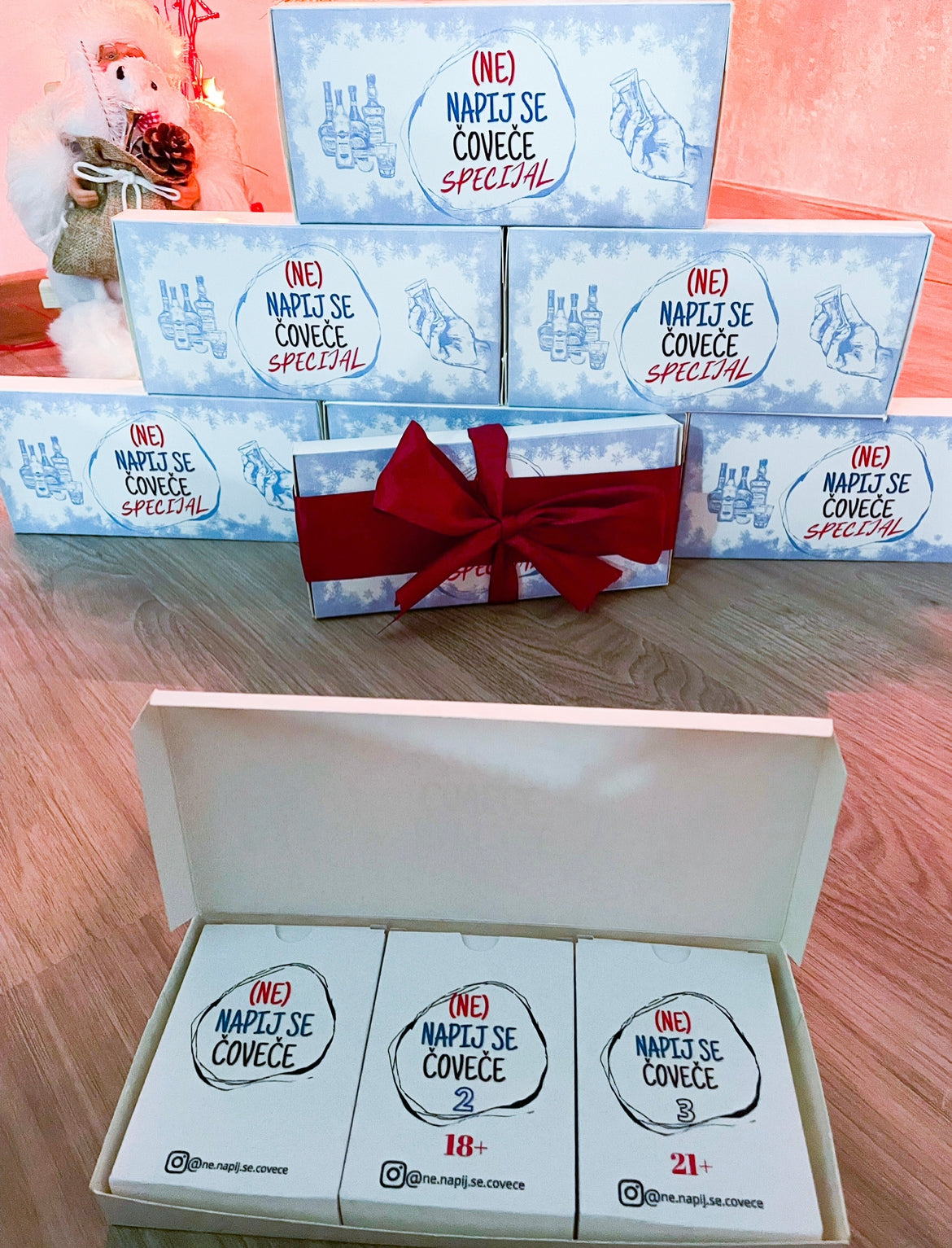 Zašto birati kad možeš imati sve? U ovoj specijalnoj ponudi dobijaš sve tri verzije igre (NE) NAPIJ SE COVEČE 3 po super ceni! Kutija sadrži običnu verziju, 18+ verziju, i 21+ verziju, tako da možeš prilagoditi igru bilo kojoj atmosferi. Počni sa lakšim izazovima iz obične verzije, pređi na smelije zadatke iz 18+ verzije, i završi žurku s najekstremnijim izazovima iz 21+ verzije.